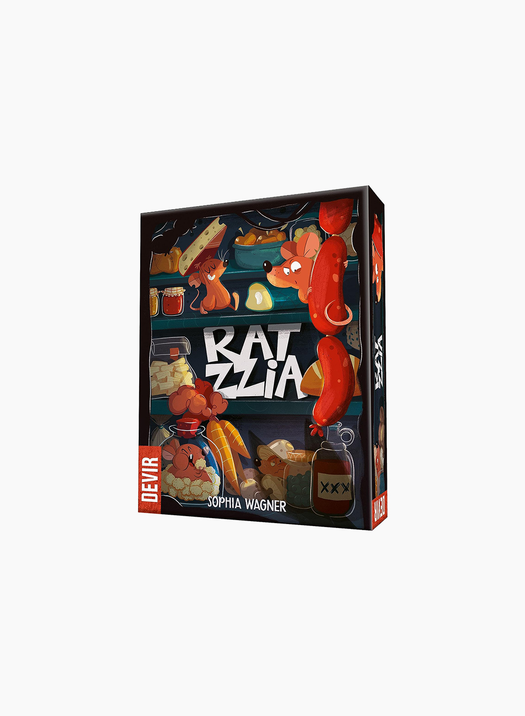 Each player has their own set of coloured dice. On their turn, they roll their dice and choose to place them on the matching spaces on the board. The dice represent mice climbing on top of each other in order to get rewards from the top shelf.