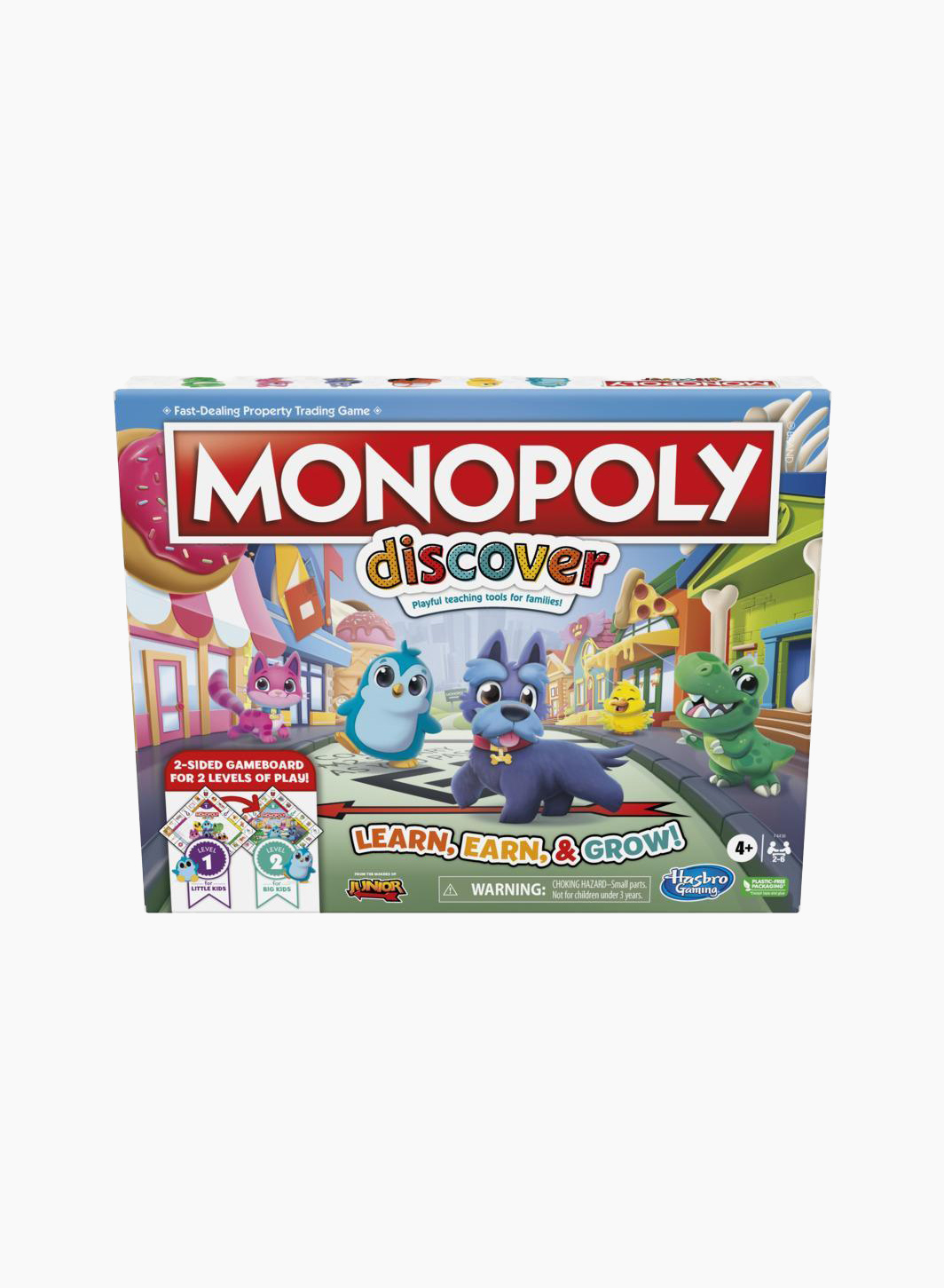 Настольная игра "Monopoly discover" идеально для приятного времяпрепровождения в кругу семьи. Двусторонняя игровая доска предусматривает 2 уровня, из которых вы можете выбрать наиболее подходящий. Одна сторона посвящена подсчету и сопоставлению, рекомендуется для детей от 4 до 5 лет. Переверните доску и перейдите к продвинутой игре с чтением и простой математикой для детей от 6 лет. На каждом уровне используются отдельные наборы денег и карточек, а также наборы правил.