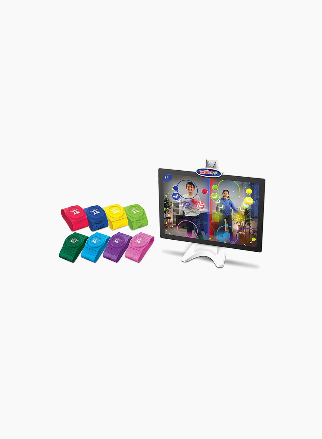 Нет коврика? Это верно! Перемещайтесь с коврика на экран в игре Twister Air! В игру входят 8 красочных ремешков Twister Air и подставка для любого смартфона или планшета. Для начала загрузите приложение Twister Air и установите смарт-устройство на прилагаемую подставку. Затем игроки надевают браслеты на запястья и лодыжки. Пока играет музыка, игроки двигают своим телом так, чтобы их полосы соответствовали цветным пятнам на экране. Чем больше пятен попадет, тем выше оценка. Заработайте наибольшее количество очков, чтобы победить! Или играйте в одиночку и попытайтесь побить прошлый рекорд.