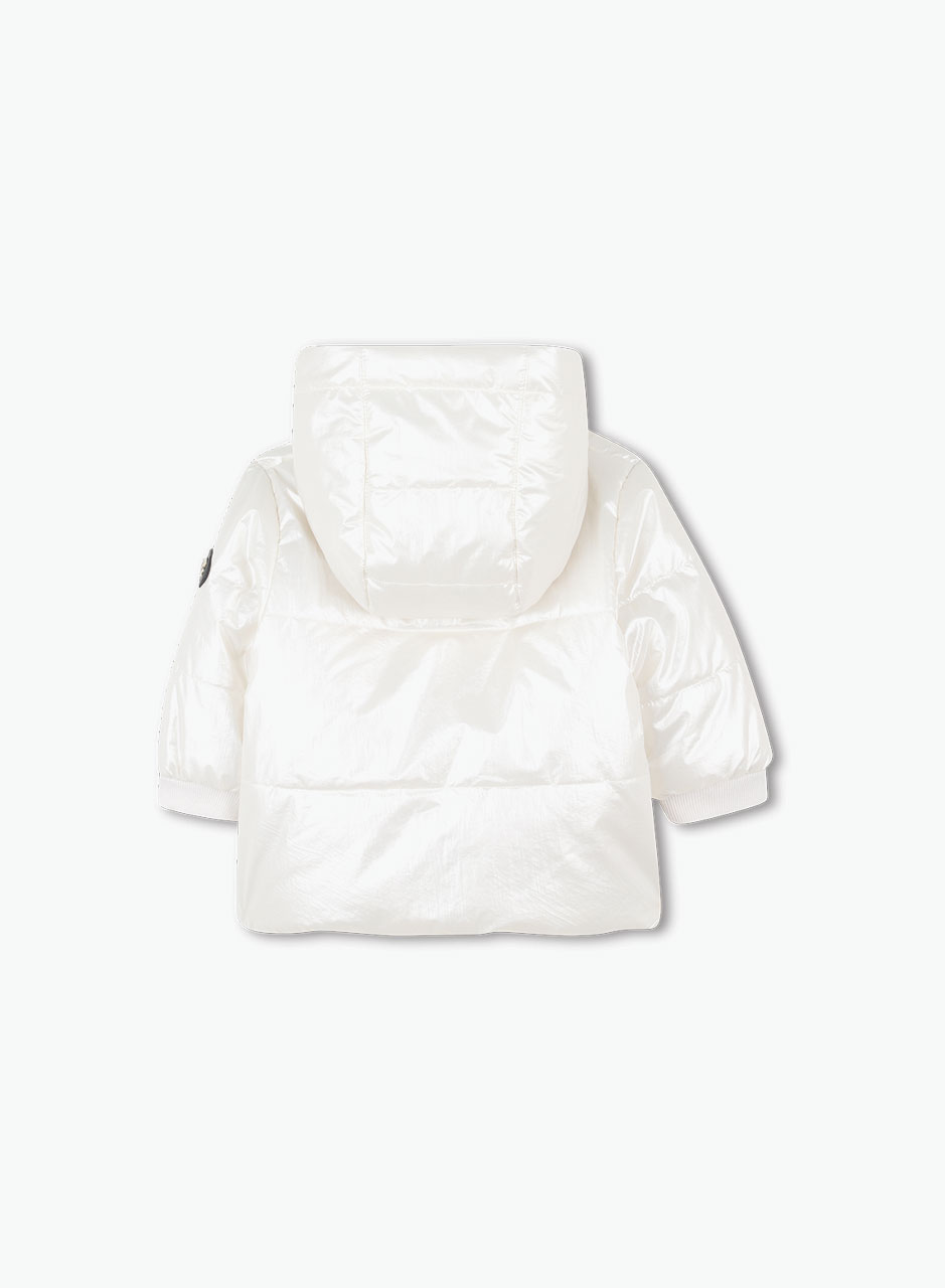 Блестящая белая пуховая куртка